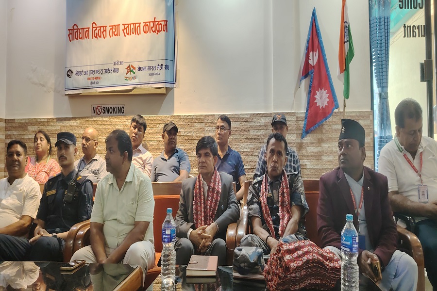 नेपाल भारत मैत्री संघ, बेलहिया उपशाखा र सोसाईटी अफ ट्राभल एण्ड टुर्स अपरेटर्स नेपाल लुम्बिनी प्रदेशको संयुक्त आयोजनामा भैरहवामा आयोजित संविधान दिवस तथा स्वागत कार्यक्रममा बोल्दै भन्सार अधिकृत रेग्मीले सकारात्मक र देशको हितमा हुने काम गर्न आफु तत्पर रहेको बताए।