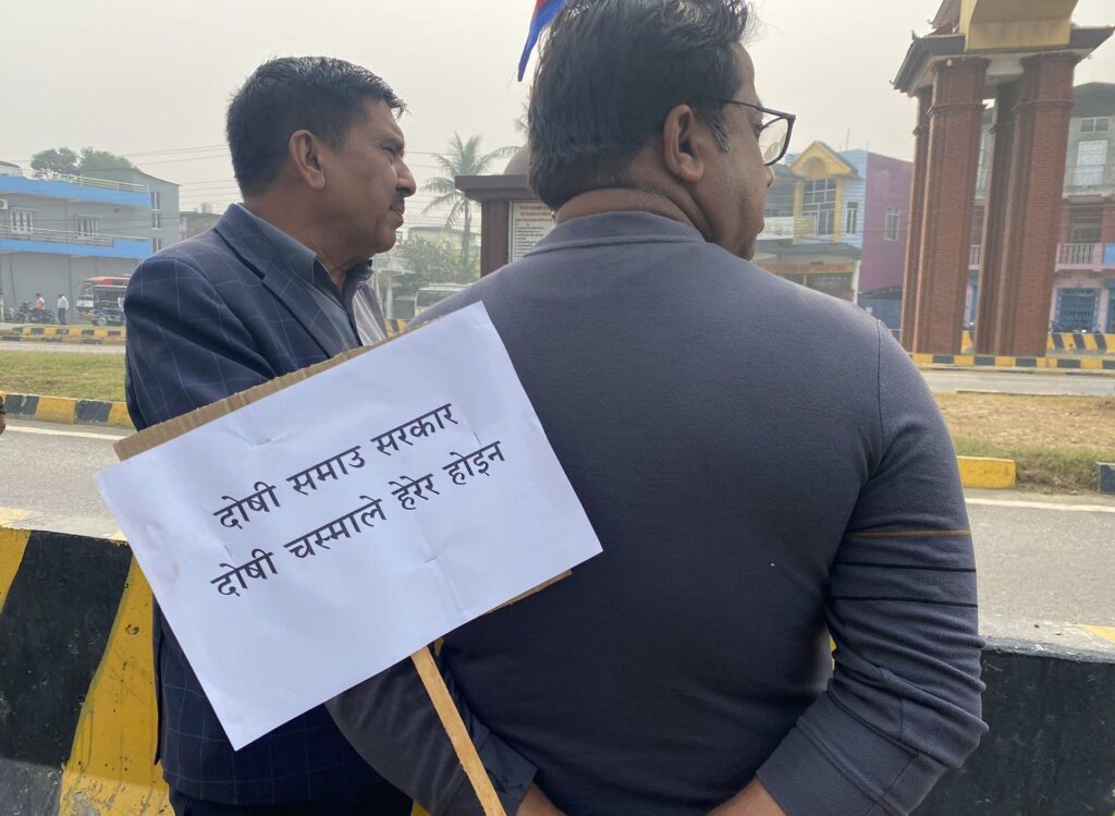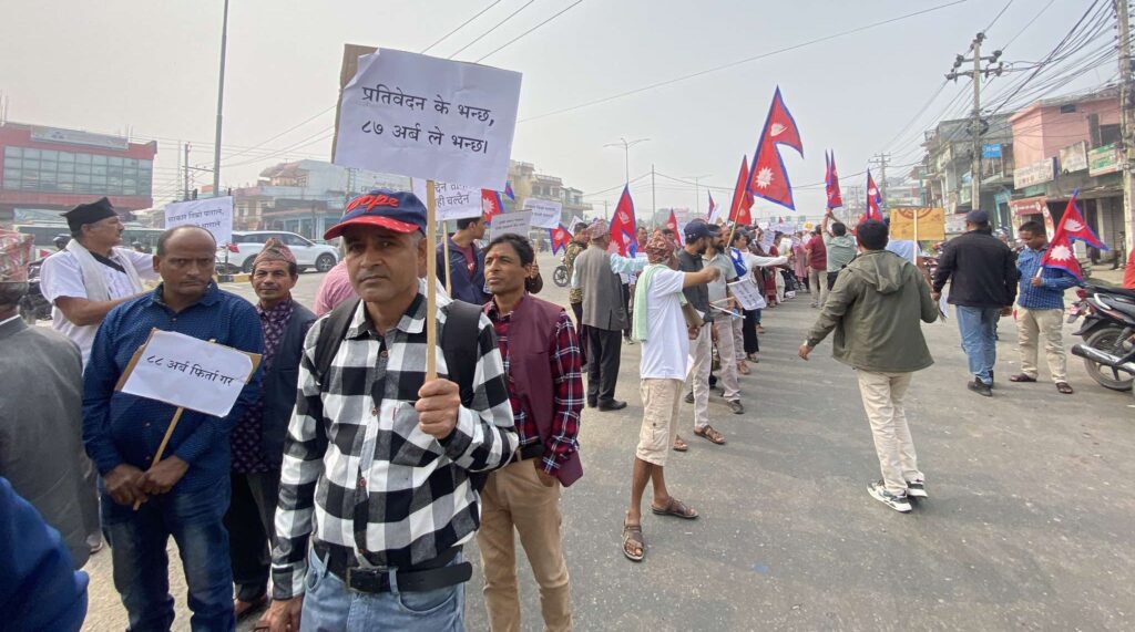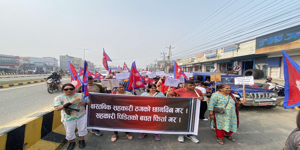वास्तविक सहकारी ठगको छानबिन गर, सहकारी पीडितलको बचत फिर्ता गर भन्दै सहकारी पीडितलाई न्याय दे, प्रतिवेदन के भन्छ, ८७ अर्ब ले भन्छ लगायत लिखित प्लेड कार्डसहित रास्वपाका नेता, कार्यकर्ताले बुधवार पनि प्रर्दशन जारी राखेका छन् ।