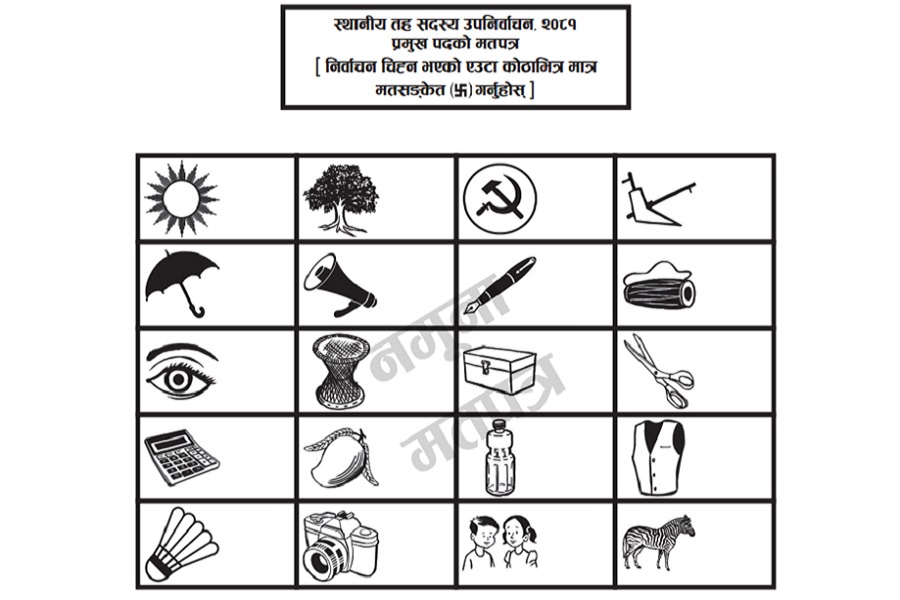 उपनिर्वाचनका लागि मतपत्रको नमूना समेत आयोगको वेवसाइटमा राखिएको छ । आयोगका प्रवक्ता नीता पोखरेल अर्यालले २ लाख ५९ हजार मतपत्र छापिएको जानकारी दिइन्। उम्मेदवारको संख्याको आधारमा राजनीतिक दल र स्वतन्त्र उम्मेदवारले प्राप्त गरेका चुनाव चिह्न मात्र समावेश गरी मतपत्र तयार पारिएको हो । स्वीकृत डिजाइन बमोजिम प्रत्येक पदका लागि छुट्टाछुट्टै मतपत्र छन् ।