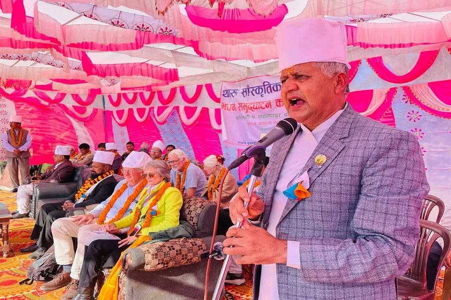 बर्दिया, २६ मंसिर । लुम्बिनी प्रदेशका मुख्यमन्त्री चेतनारायण आचार्यले बर्दियाको बाँसगढीमा थारु सांस्कृतिक केन्द्रको नवनिर्मित भवनको उद्घाटन गरेका छन् । प्राचीन सिर्जनशिल आदिवासी समाज रेडियो गुर्वावा एफएमले निर्माण गरेको सांस्कृतिक भवनको अन्तर्राष्ट्रिय मानवअधिकार दिवस तथा लैंगिक हिंसाविरुद्धको १६ दिने अभियानको सन्दर्भ पारेर मुख्यमन्त्री आचार्यले उद्घाटन गरेका हुन् ।