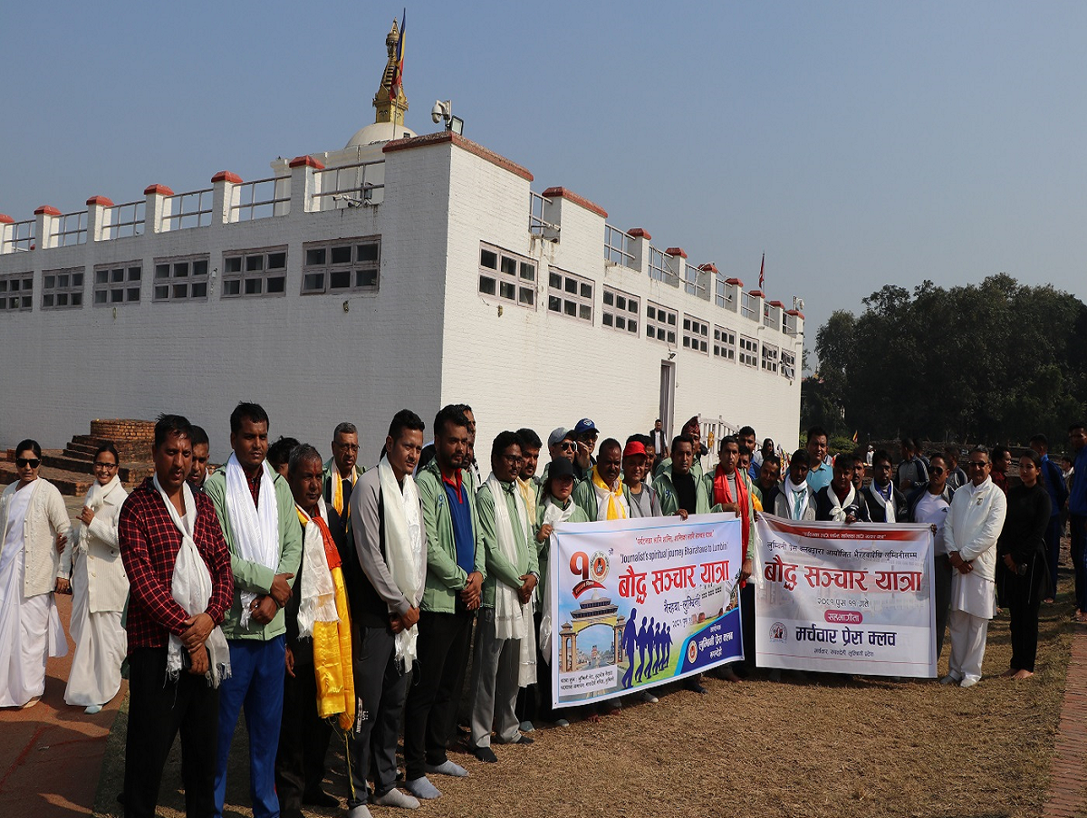 भैरहवा, ११ पुस। शान्तिका अग्रदुत गौतम बुद्धले हिँडेरै विश्वभर बुद्ध सन्देश फैलाएका थिए । यसैले बौद्ध धर्ममा पदयात्राको खास महत्व छ । यही पदयात्रालाई प्रबद्र्धन गर्ने र लुम्बिनी घुम्न स्वदेशी तथा विदेशी पर्यटक अभिप्रेरित गर्ने उद्देश्यले भैरहवा–लुम्बिनी २४ किलोमिटर बौद्ध संचार यात्रा गरिएको छ । लुम्बिनी प्रेस क्लब, रुपन्देहीले आफ्नो १०औं स्थापना दिवसको अवसरमा बिहीबार भैरहवाको लुम्बिनी गेटदेखि लुम्बिनीस्थित मायादेवी मन्दिरसम्म संचार यात्रा गरेको हो ।