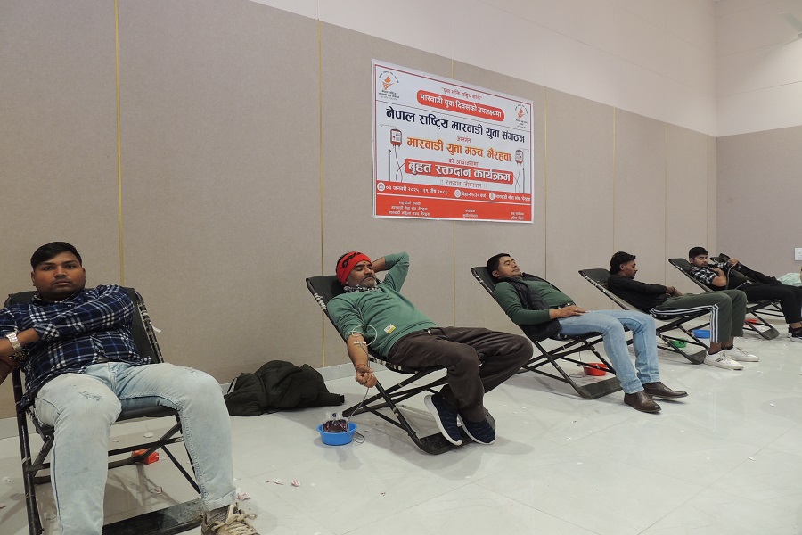 भैरहवा, १९ पुस। मारवाडी युवा दिवसको अवसरमा नेपाल राष्ट्रिय मारवाडी युवा संगठन केन्द्रीय समिति र यसअन्तर्गत रहेका मारवाडी युवा मंचहरुले मुलुकका २० सहरमा रक्तदान गरेका छन् । रगत अभावमा कसैले पनि अनाहकमा ज्यान गुमाउन नपरोस् भन्ने उद्देश्यकासाथ मुलुकका मुख्य सहरहरुमा एकैपटक शुक्रबार रक्तदान कार्यक्रम आयोजना गरिएको मारवाडी युवा संगठन केन्द्रीय समितिले जनाएको छ ।