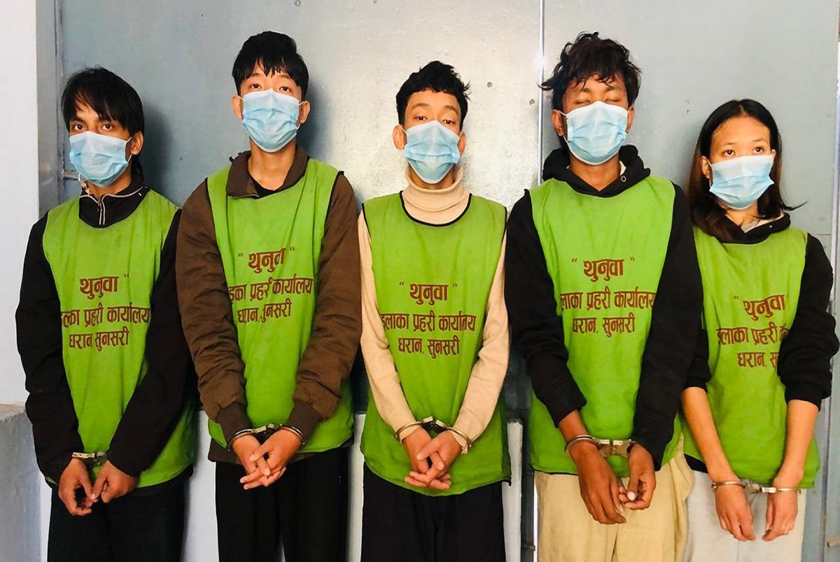 हत्यामा संग्लन आरोपमा प्रहरीले धरान उपमहानगरपालिका-१३ का १८ वर्षीय उत्सव मगर, २१ वर्षीय विश्रान्ती मगर, उपमनपा-८ का २२ वर्षीय रोमन गुरुङ, १७ वर्षीय प्रस्थान राई र उपमनपा-५ का २१ वर्षीय सुदिप तामाङलाई पक्राउ गरेको जनाएको छ ।