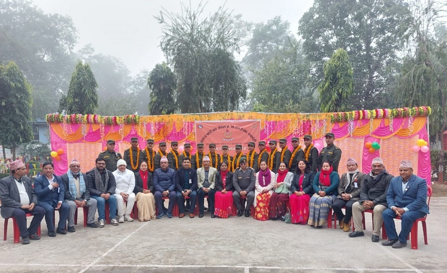 भैरहवा, ८ माघ । रुपन्देहीको तिलोत्तमा नगरपालिका कार्यालयले छनोट गरेका प्रहरीहरु दीक्षित भएका छन् । स्थानीय सरकार संचालन ऐन अन्तर्गतका कानुन कार्यान्वयनका लागि नगरपालिकाको कार्यालयले भर्ना अह्वान गरी छनौट गरेको १५ जना प्रहरीहरु दीक्षित भएका हुन् ।