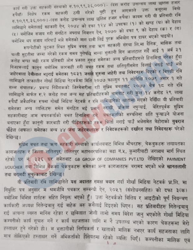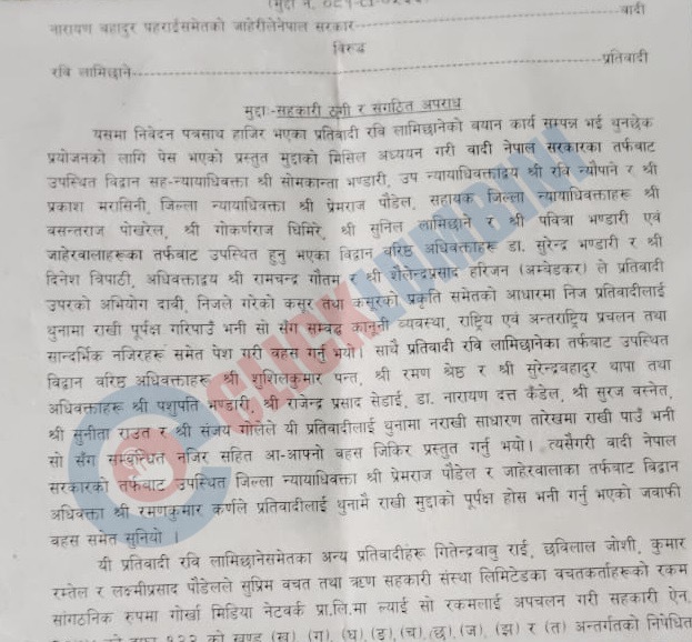 गत माघ ६ गते जिल्ला सरकारी वकिल कार्यालय रुपन्देहीले पुरक अभियोग पत्रबाट लामिछानेसमेत विरुद्ध जिल्ला अदालत रुपन्देहीमा मुद्दा दर्ता गरेको थियो ।