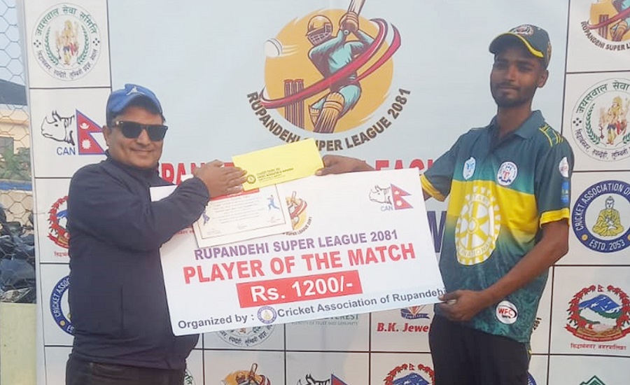 रुपन्देही क्रिकेट संघको आयोजना र सिद्धार्थनगर नगरपालिकाको सहप्रायोजनामा जारी प्रतियोगिताको विजेता टिमले नगद १ लाख १ रुपैयाँ र उपविजेताले ५० हजार १ रुपैयाँ नगदसहित ट्रफी, मेडल र प्रमाणपत्र प्राप्त गर्नेछन् । यस्तै, हरेक खेलको म्यान अफ द म्याचले १ हजार दुई सय, म्यान अफ द सिरिजले १५ हजार, बेष्ट ब्याटर, बेष्ट बलर र उदयीमान खेलाडीले जनही ५ हजार रुपैयाँ पाउने संघका कोषाध्यक्ष तथा खेल संयोजक निरजप्रताप खाँणले जानकारी दिए ।