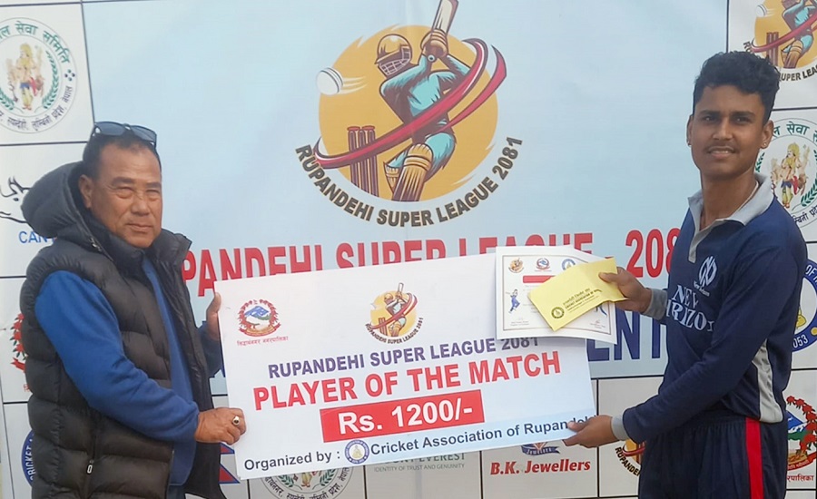 रुपन्देही क्रिकेट संघको आयोजना र सिद्धार्थनगर नगरपालिकाको सहप्रायोजनामा जारी प्रतियोगिताको विजेता टिमले नगद १ लाख १ रुपैयाँ र उपविजेताले ५० हजार १ रुपैयाँ नगदसहित ट्रफी, मेडल र प्रमाणपत्र प्राप्त गर्नेछन् । यस्तै, हरेक खेलको म्यान अफ द म्याचले १ हजार दुई सय, म्यान अफ द सिरिजले १५ हजार, बेष्ट ब्याटर, बेष्ट बलर र उदयीमान खेलाडीले जनही ५ हजार रुपैयाँ पाउने संघका कोषाध्यक्ष तथा खेल संयोजक निरजप्रताप खाँणले जानकारी दिए ।