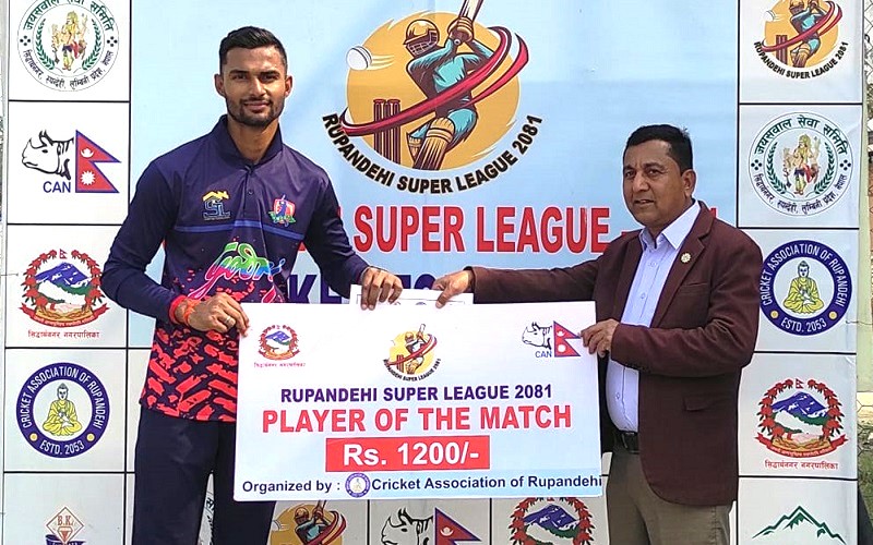 रुपन्देही क्रिकेट संघको आयोजना र सिद्धार्थनगर नगरपालिकाको सहयोगमा जारी प्रतियोगिताको विजेता टिमले नगद १ लाख १ रुपैयाँ र उपविजेताले ५० हजार १ रुपैयाँ नगदसहित ट्रफी, मेडल र प्रमाणपत्र प्राप्त गर्नेछन् । यस्तै, हरेक खेलको म्यान अफ द म्याचले १ हजार दुई सय, म्यान अफ द सिरिजले १५ हजार, बेष्ट ब्याटर, बेष्ट बलर र उदयीमान खेलाडीले जनही ५ हजार रुपैयाँ पाउने संघका कोषाध्यक्ष तथा खेल संयोजक निरजप्रताप खाँणले जानकारी दिए ।
