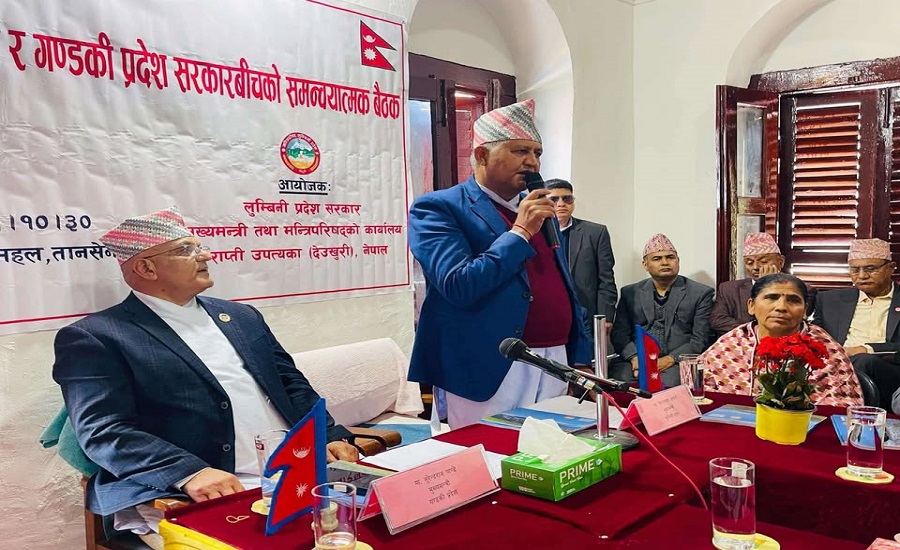 पाल्पा, ३० माघ । लुम्बिनी प्रदेशका मुख्यमन्त्री चेतनारायण आचार्यले अन्तर प्रदेश सहकार्य र समन्वयबाट धेरै काम गर्न सकिने बताएका छन् । लुम्बिनी प्रदेश सरकारले गण्डकी प्रदेशका मुख्यमन्त्री सुरेन्द्रराज पाण्डेको उपस्थितीमा पाल्पाको रानीमहलमा आयोजना भएको अन्तर प्रदेश समन्वय बैठकलाई बुधवार सम्बोधन गर्दै उनले आपसी समन्वय र सहकार्यबाट प्रभावकारी काम गर्न सकिने बताएका हुन्।