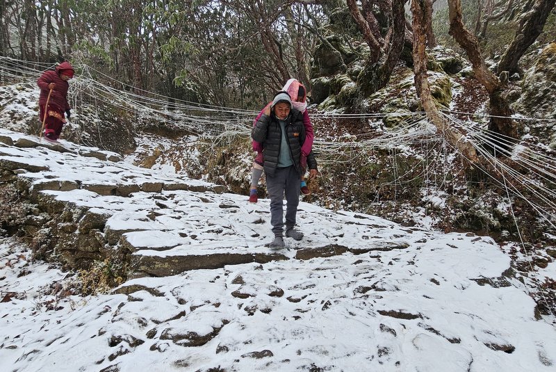 ताप्लेजुङ, ४ फागुन । पाथीभारा क्षेत्रमा हिमपात भएको छ । तीन हजार सात सय ९४ मिटरको उचाइमा पर्ने पाथीभरामा गएराति हिमपातसँगै चिसो बढेको छ।