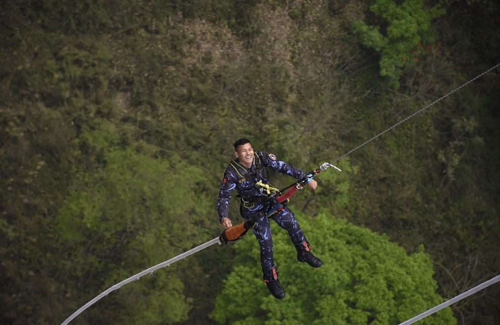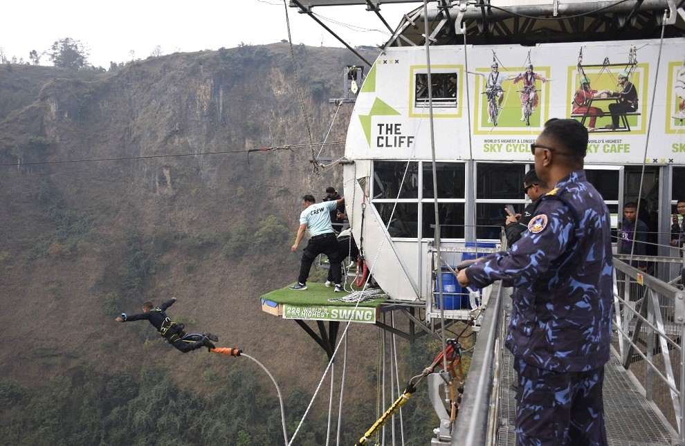 भैरहवा, २८ फागुन। पश्चिम नवलपरासी जिल्लामा स्थित नेपाल प्रहरी युक्ति तालिम महाविद्यालय, जर्गाहमा संचालित प्रहरी विशेष कला तथा कारवाही (कमाण्डो) तालिम संचालनमा छ । जसअन्र्तगत तालिमका १०६ प्रशिक्षार्थीहरुले पर्वत जिल्लाको कुस्मास्थित द क्लिफमा बन्जी जम्प गरेका छन्।