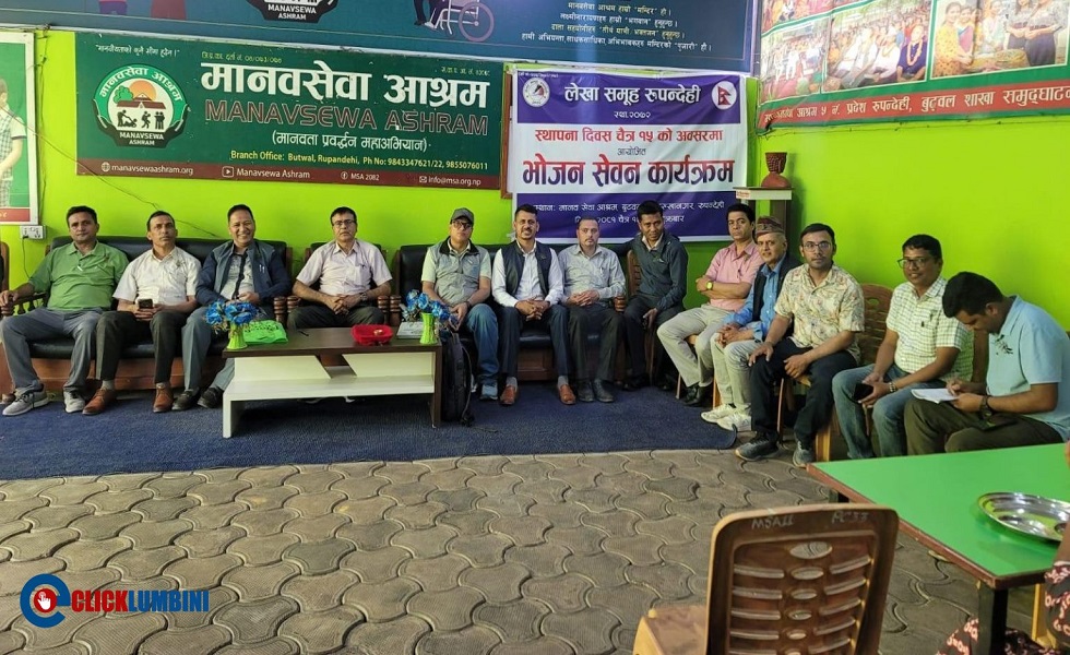 ‘धेरै जनाले आफ्नो संघसंस्थाको स्थापना दिवस विभिन्न तरिकाले मनाउनुहुन्छ। जुन ठिक पनि हो’,लेखा समूह रुपन्देहीका सचिव ओमश कुमार गैरेले भने, ‘तर, हामीले केही फरक तरिकाले स्थापना दिवस मनाउने सोचकासाथ आश्रममा आश्रित व्यक्तिहरुलाई भोजन गराएर स्थापना दिवस मनाएका हौँ ।’