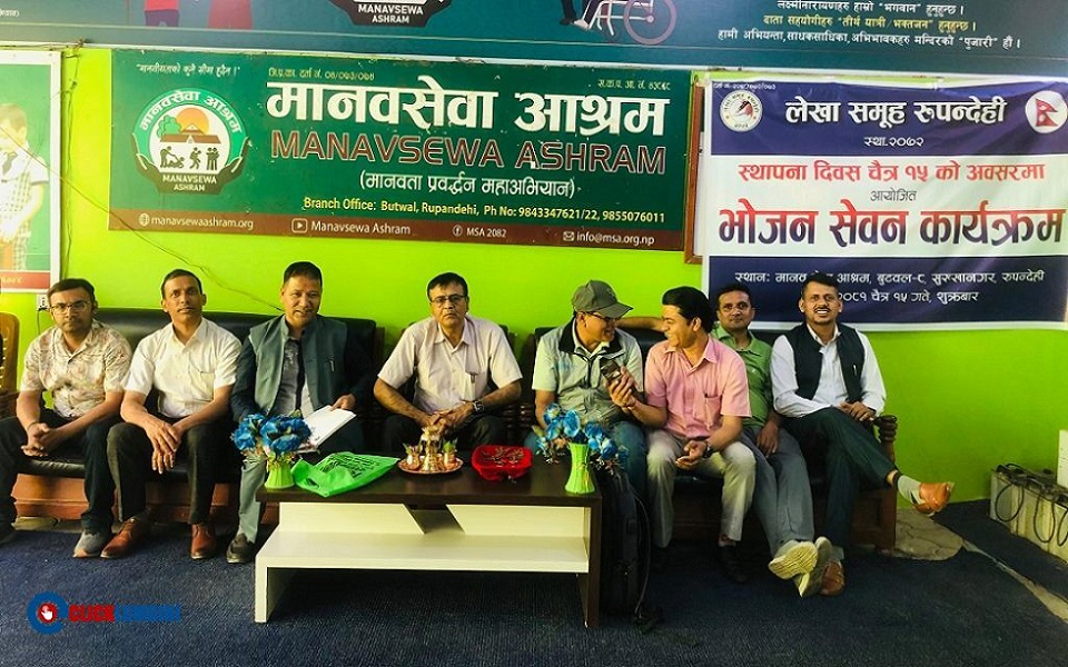 भैरहवा,१५चैत। लेखा समूह रुपन्देहीले बुटवलस्थित मानवसेवा आश्रममा अश्रित व्यक्तिहरुलाई भोजन गराएर आफ्नो १० औं स्थापना दिवस मनाएको छ।