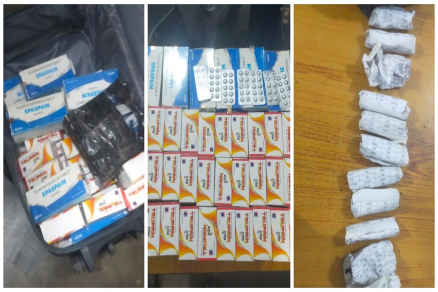 प्रहरीले उनीहरुको साथबाट ट्रुपेन ट्याबलेट चार हजार ४३१, स्पासपेन ट्याबलेट पाँच हजार ९१२ र टापेन्टा ट्याबलेट १२० गरी दश हजार ४६३ ट्याबलेट बरामद छ । साथै, उनीहरुले प्रयोग गरेको दुई वटा मोटरसाइकल, नगद दुई लाख ४७ हजार ७२० रुपैयाँ, ६ वटा मोबाइल फोनसमेत बरामद भएको डीएसपी दोङले बताए। उनीहरुलाई पक्राउ परेर घटनाका सम्बन्धमा थप अनुसन्धान भइरहेको प्रहरीले जनाएको छ।