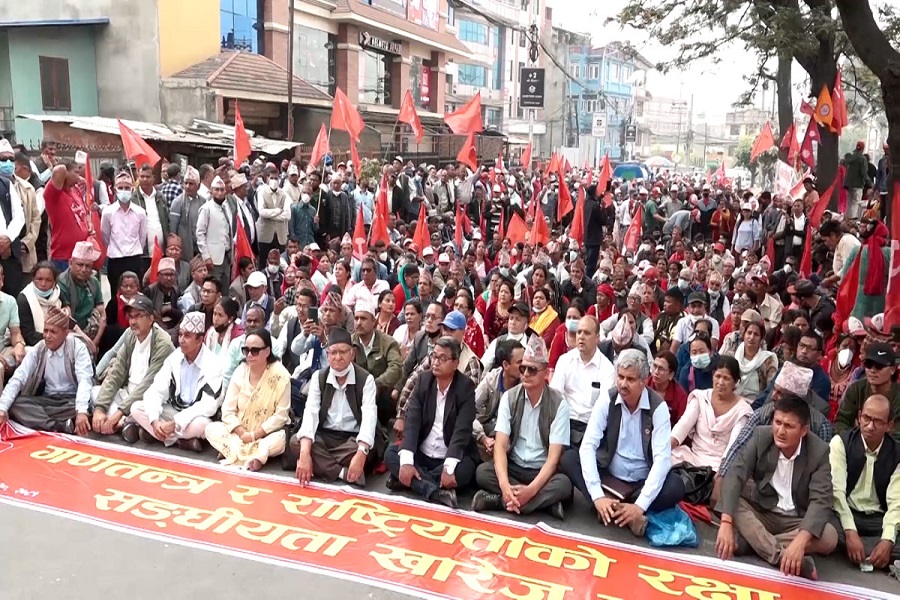 प्रर्दशनमा गणतन्त्र र राष्ट्रियताको रक्षा गरौं, संघीयता खारेज गरौं जस्ता ब्यानर र प्लेकार्डका साथ काठमाडौंको माइतीघरमा प्रदर्शन गरेका हुन् ।