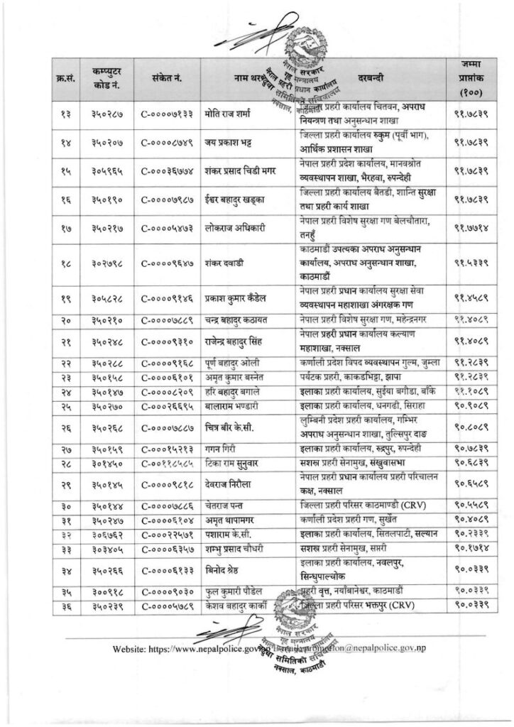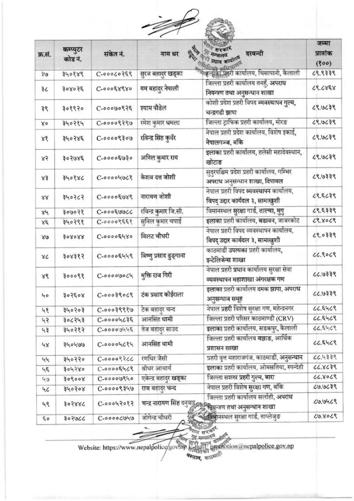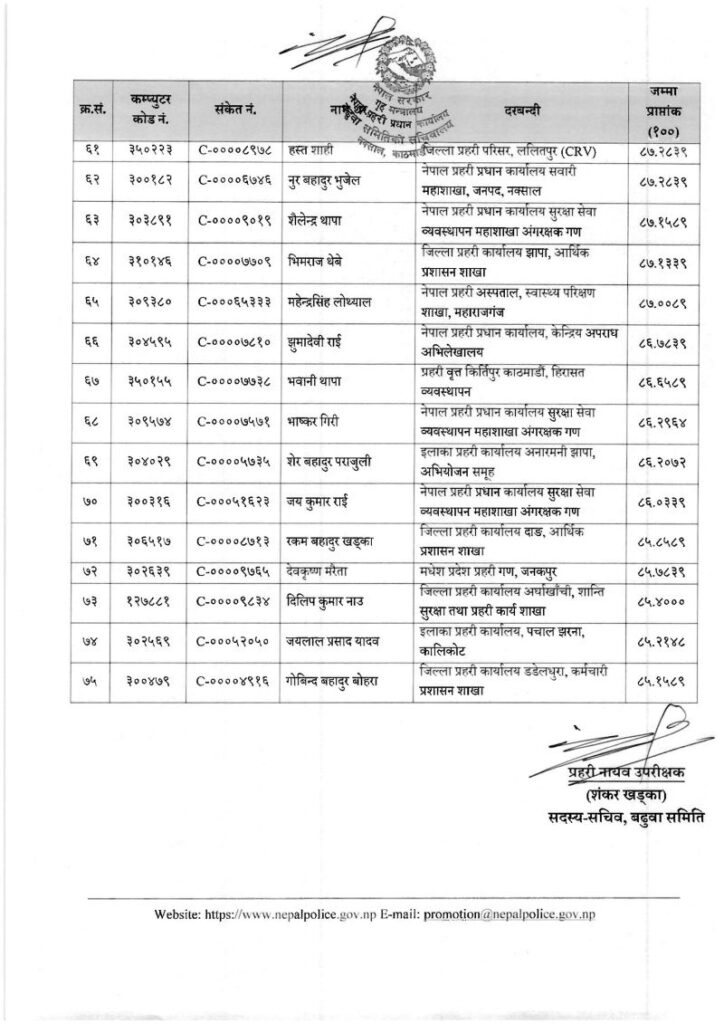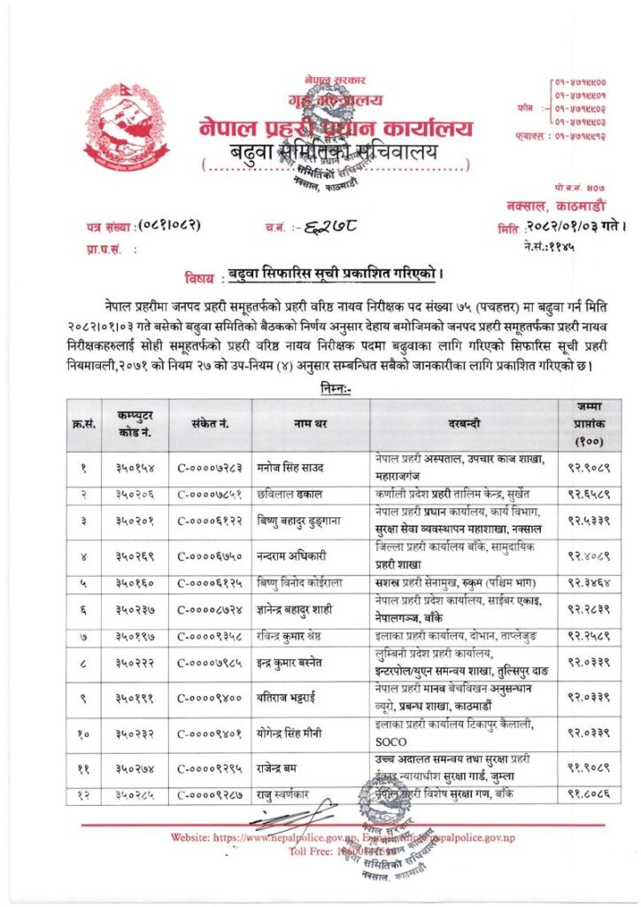 बढुवाका लागि गरिएको सिफारिस सूची प्रहरी नियमावली,२०७१ को नियम २७ को उपनियम (४) अनुसार प्रकाशित गरिएको नेपाल प्रहरी प्रधान कार्यालयले जनाएको छ।
