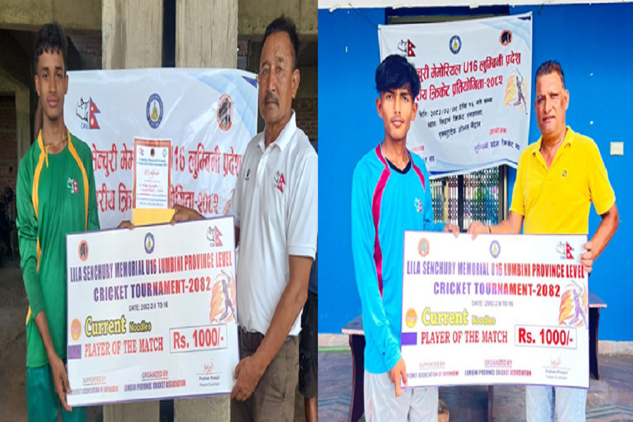 भैरहवा,१२जेठ। रुपन्देहीमा जारी लीला सेन्चुरी मेमोरियल यु–१६ लुम्बिनी प्रदेशस्तरीय क्रिकेट प्रतियोगितामा दाङ र पश्चिम नवलपरासी विजयी भएका छन्। भैरहवास्थित सिद्धार्थ क्रिकेट रंगशालामा भएको खेलमा दाङले बर्दियालाई पराजित गर्यो भने तिलोत्तमास्थित एक्स्ट्राटेक ओभल क्रिकेट मैदानमा भएको खेलमा नवलपरासीले पाल्पालाई ६९ रनले पराजित गरेको हो ।