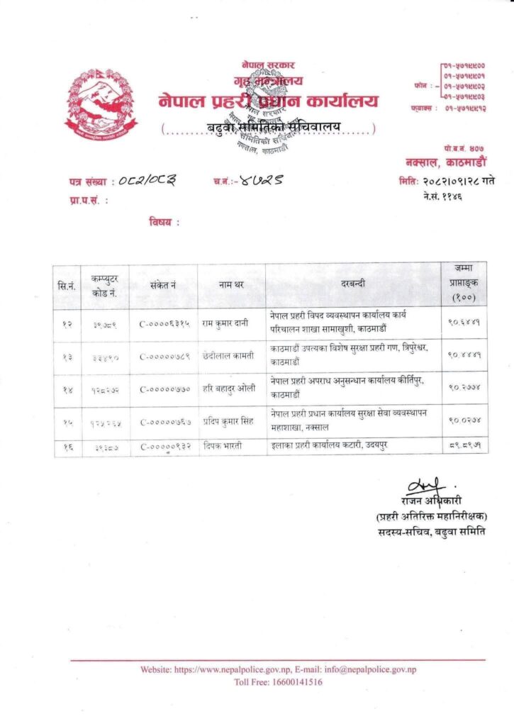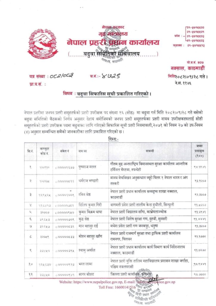 काठमाडौं,२८ पुस। नेपाल प्रहरीका १६ डीएसपी एसपी पदमा बढुवा सिफारिस भएका छन्।