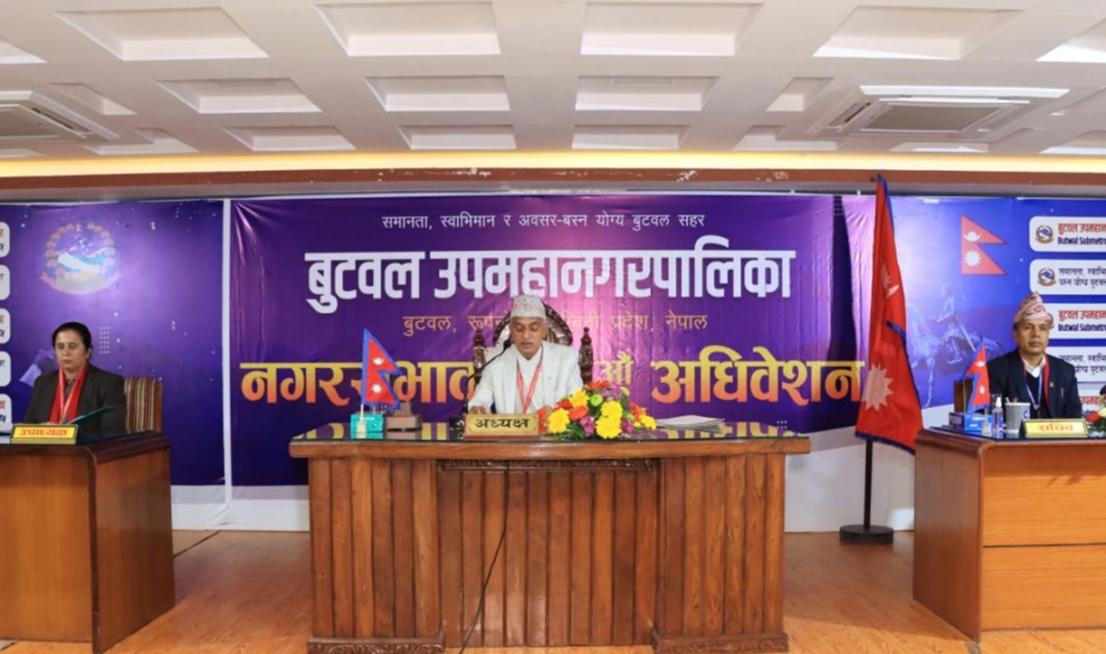 ११ पुस, बुटवल । रुपन्देहीको बुटवल उपमहानगरपालिकाको नगर सभाको १४ औं अधिवेशन सुरु भएको छ । बुधबार शुरु भएको अधिवेशनको पहिलो बैठकमा नगरप्रमुख खेलराज पाण्डेयले चालु आर्थिक वर्षको अर्धवार्षिक समीक्षा पेश गर्दै बुटवललाई सफा, सुन्दर, हरियाली र उज्यालो शहर बनाउनका लागि योजनाहरु अगाडि बढेको बताए ।