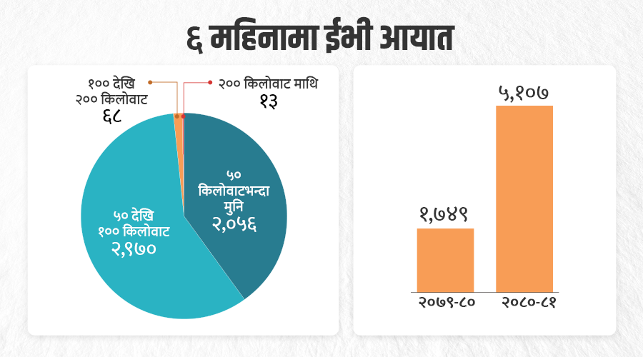 गत आव २०७९÷८० पुस मसान्तसम्म १ हजार ७ सय ४९ युनिट ईभी आयात भएको थियो । चालु आव पुस मसान्तमा आइपुग्दा यो संख्या ५ हजार १ सय ७ भएको छ ।