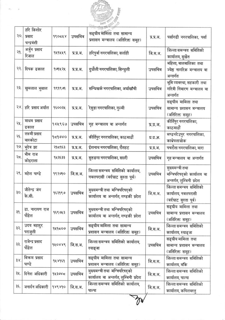 मन्त्रालयले बिहीबार उनीहरुलाई काज, सरुवा तथा पदस्थापन गर्ने निर्णय गरेको हो ।