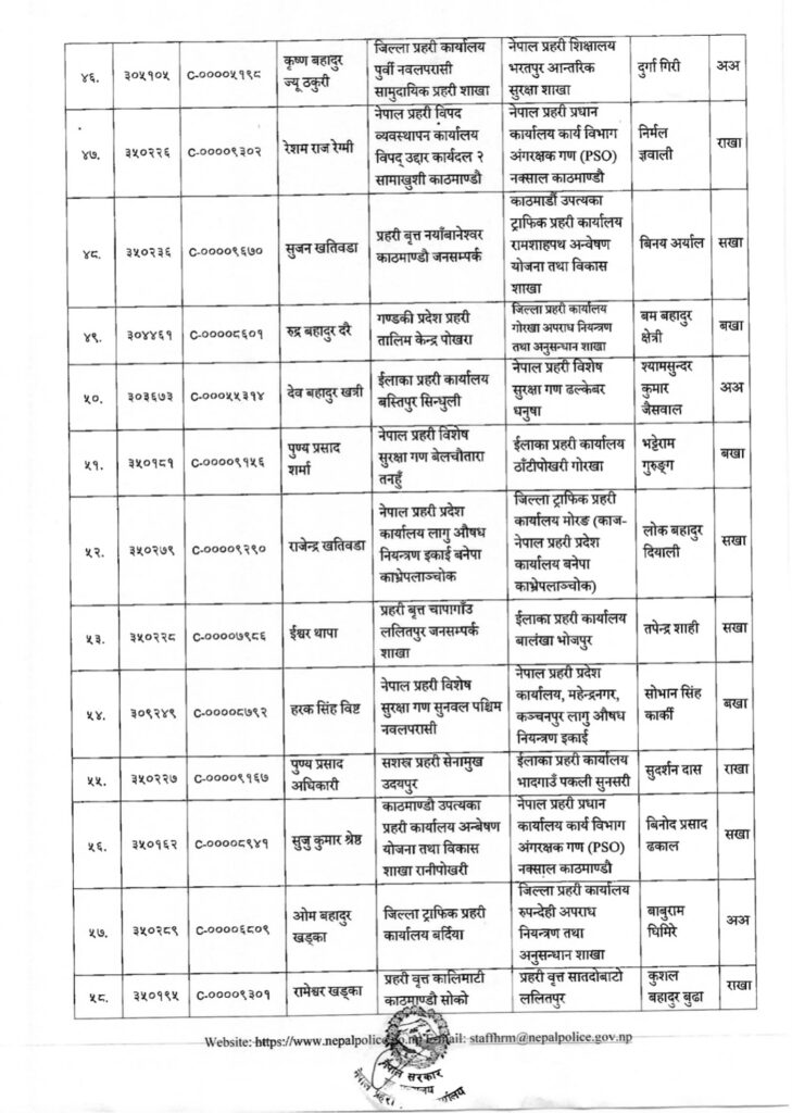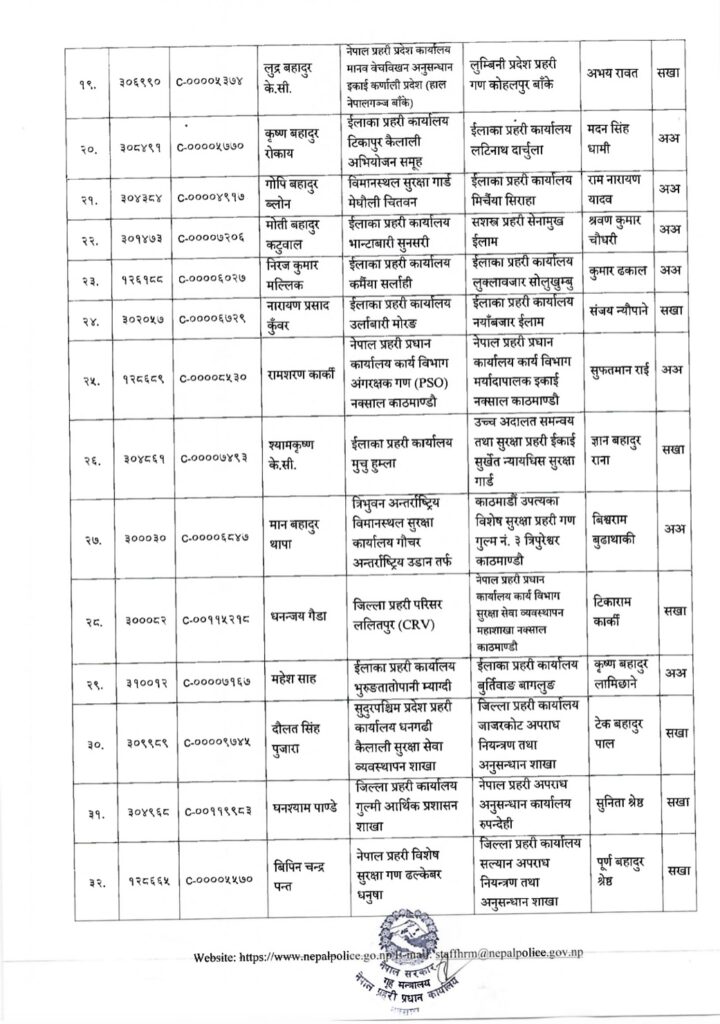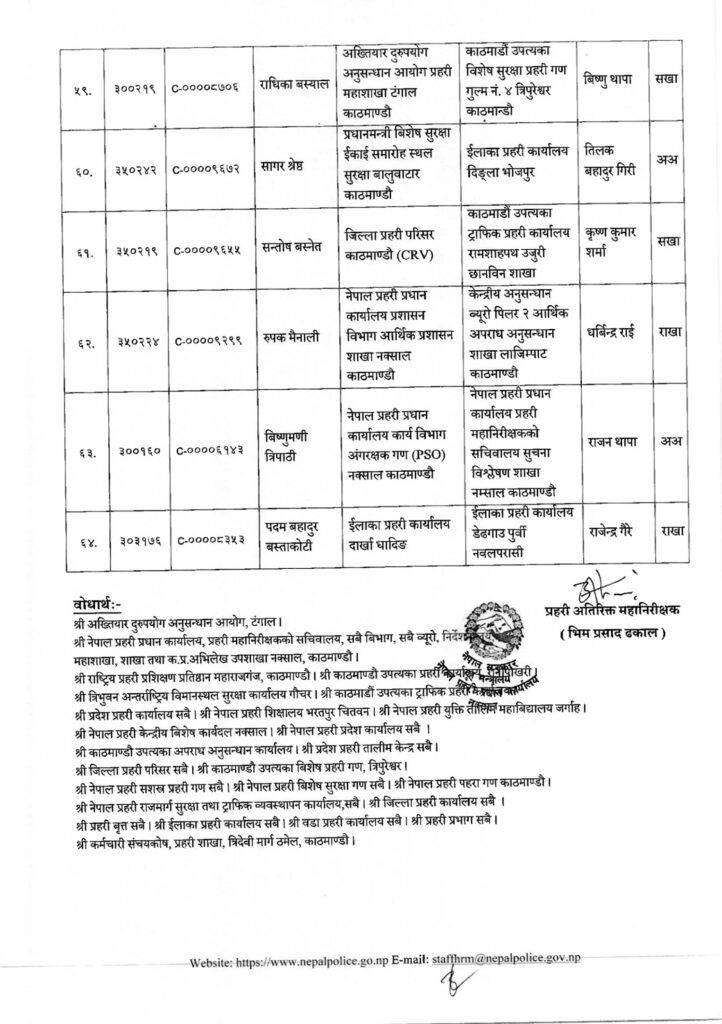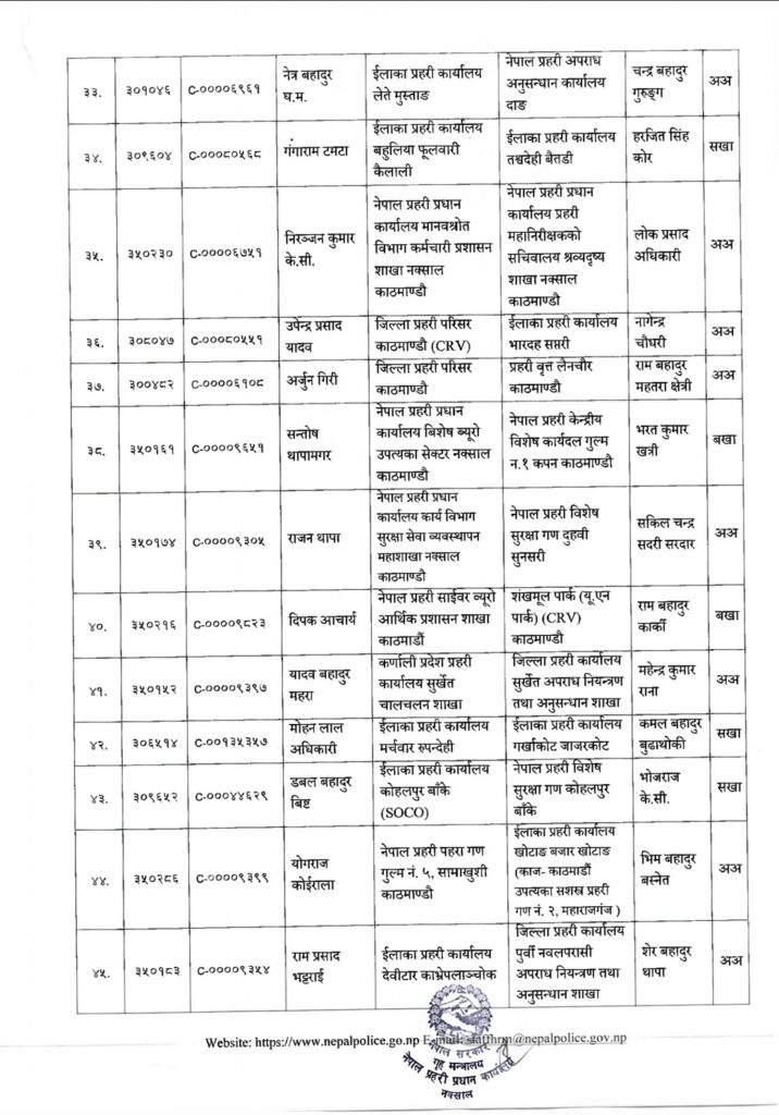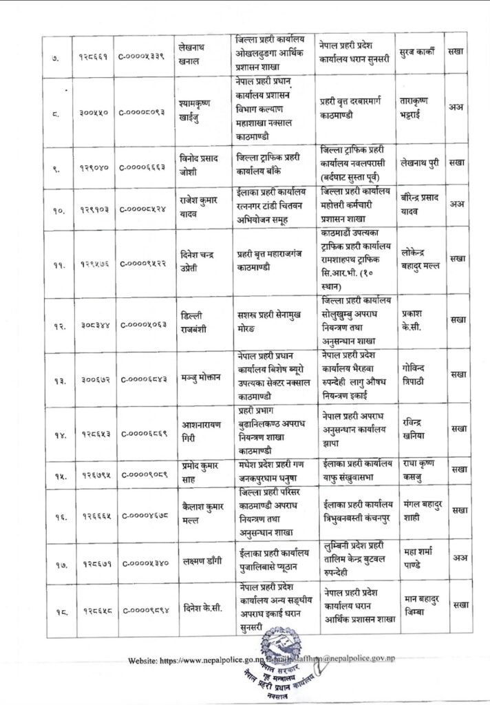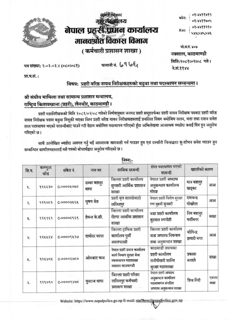 प्रहरी प्रधान कार्यालयले प्रहरी महानिरीक्षकको मंगलबारको निर्णयानुसार उनीहरुको बढुवा भएको हो । बढुवाका साथै उनीहरुको पदस्थापन समेत गरिएको छ ।