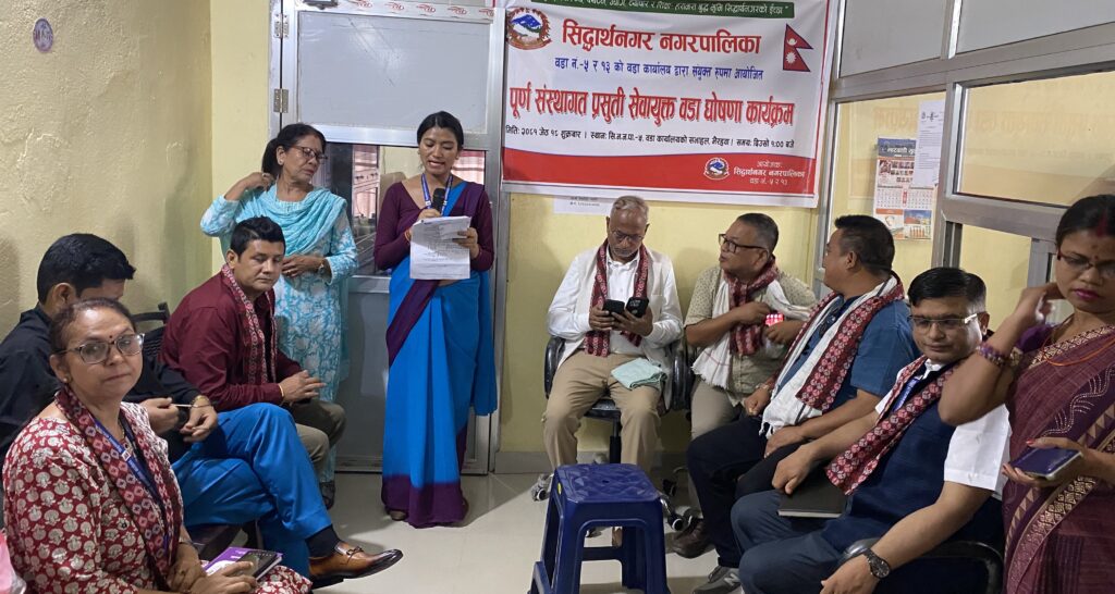 शुक्रवार दुवै वडाद्धारा संयुक्त रुपमा आयोजित कार्यक्रममा सिद्धार्थनगर नगरपालिकाका प्रमुख इश्तियाक अहमद खाँले वडा नम्बर ५ र १३ पूर्ण संस्थागत प्रसुती सेवायुक्त वडा घोषणा गरे ।