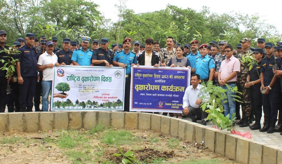 भैरहवा, १५ असार। भैरहवामा ‘राष्ट्रिय वृक्षारोपण दिवस २०८१’ को अवसरमा वृक्षारोपण कार्यक्रम गरिएको छ । जिल्ला वन कार्यालय रुपन्देहीको आयोजना तथा जिल्ला प्रहरी कार्यालय रुपन्देहीको सहकार्यमा निर्माणधिन जिल्ला प्रहरी कार्यालयको भवन परिसरमा वृक्षारोपण गरिएको हो । भैरहवाको शान्तिनगर स्थित निर्माणधिन रहेको प्रहरी कार्यालयको भवन परिसरमा लिची, आँप, अमला, कटहर, बेलउती (अम्बा) निम, अशोक लगायत गरी चार सय पैतिस वटा विरुवा रोपण गरिएको जिल्ला प्रहरी कार्यालय रुपन्देहीका डिएसपी एवं सूचना अधिकारी मनोहर भट्टले बताए ।